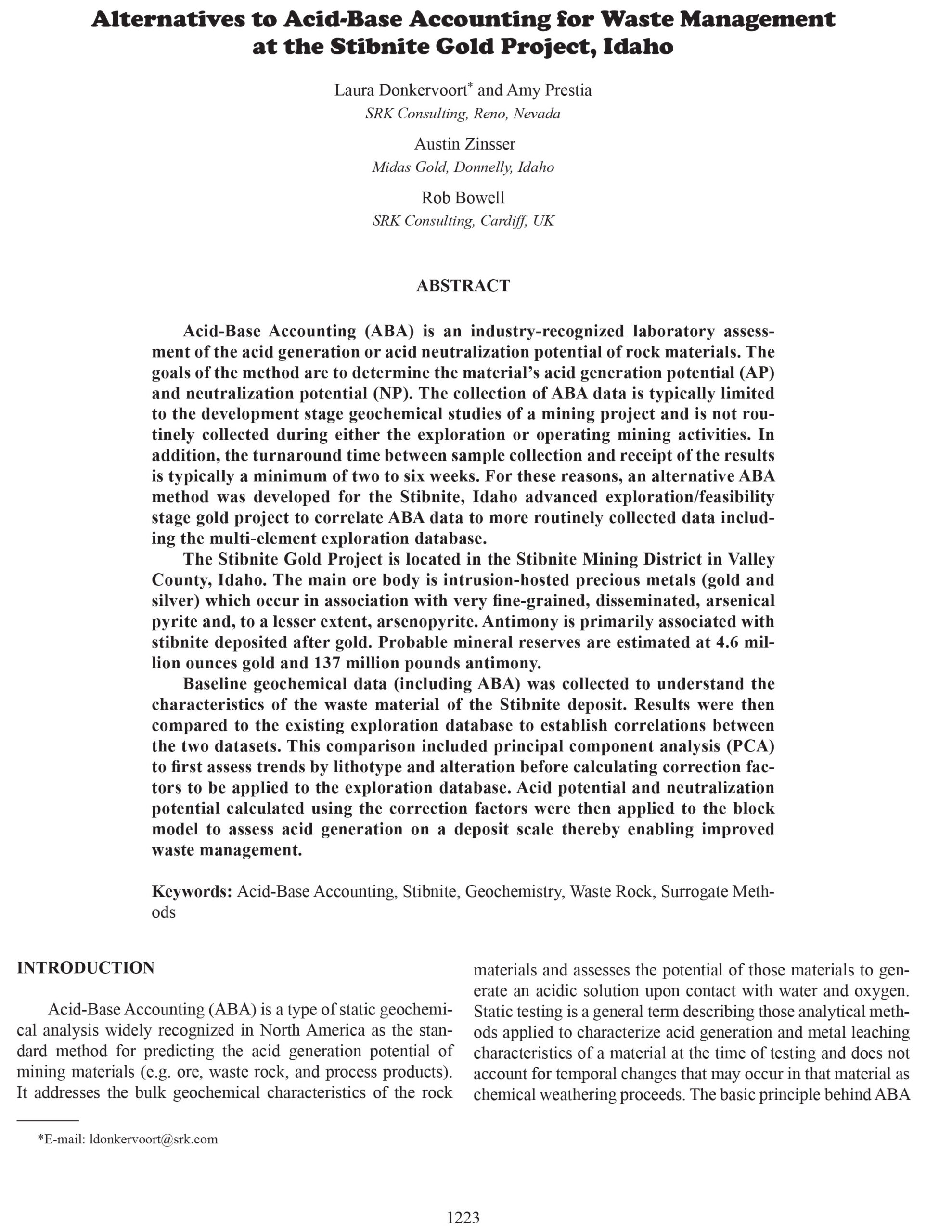 Keywords: Acid-Base Accounting, Stibnite, Geochemistry, Waste Rock, Surrogate Methods