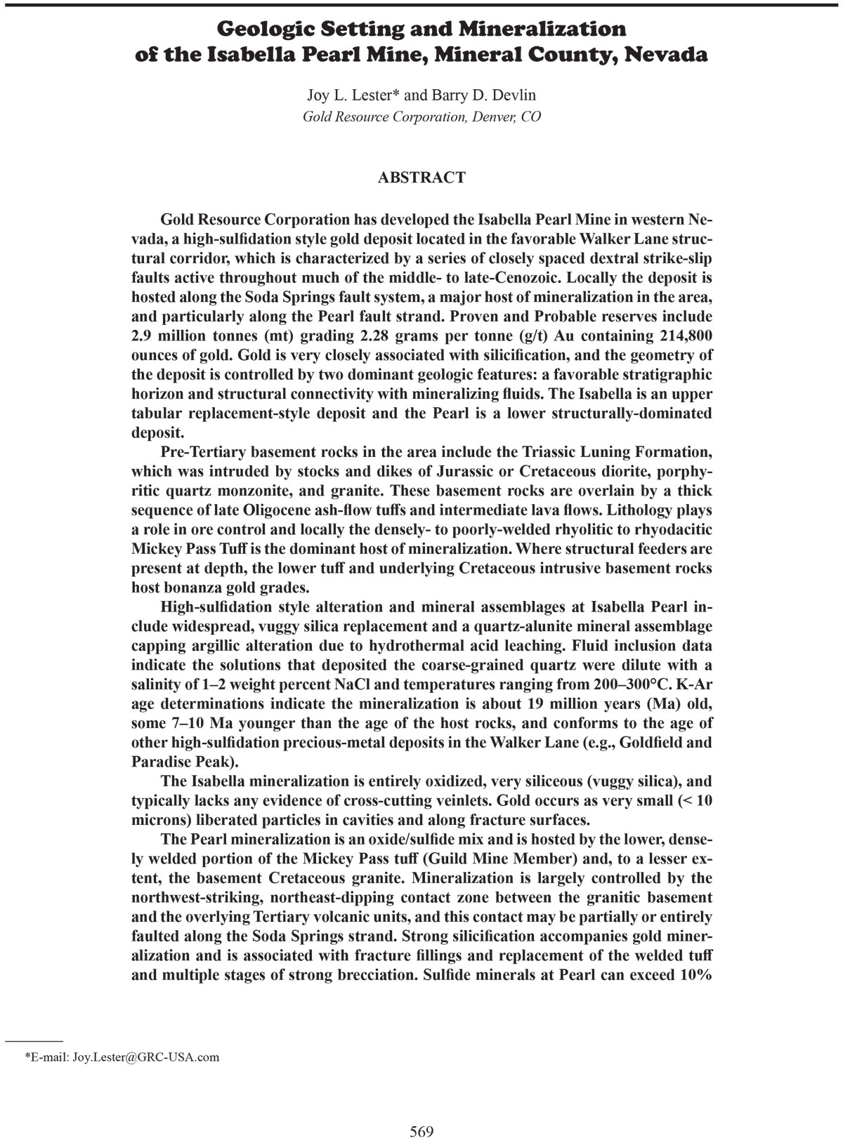 tabular replacement-style deposit and the Pearl is a lower structurally-dominated