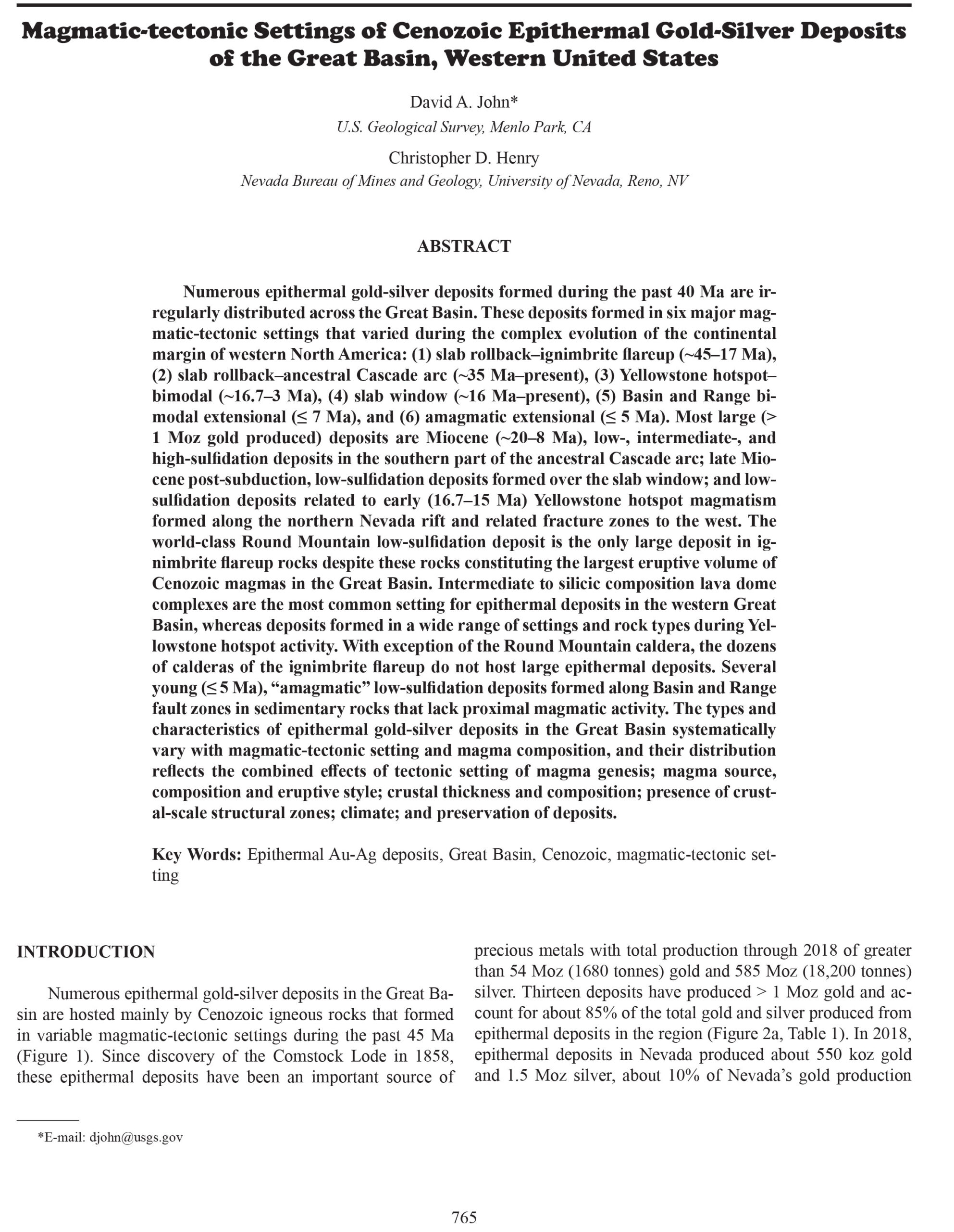 Key Words: Epithermal Au-Ag deposits, Great Basin, Cenozoic, magmatic-tectonic setting